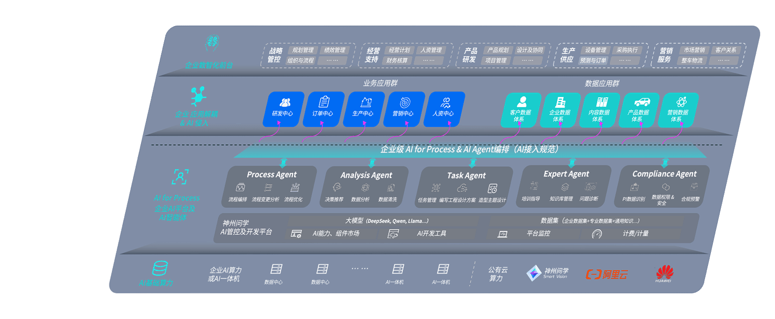NG电子游戏问学智车解决方案是一套基于AI技术的汽车行业智能化系统,,,覆盖从底层算力到顶层AI应用的全栈方案。。。。方案由算力层、、、模型层和应用层组成:算力层,,方案支持多种一体机配置,,,,具备云端灵活部署、、多云适配以及动态优化计算资源的能力;模型层,,NG电子游戏问学平台版提供了企业级AI应用一站式构建与管理平台,,支持基于后训练强化技术的汽车企业专属模型的训练、、、、评测和运营;应用层,,,,NG电子游戏问学DeepSeek版提供包括超级员工、、智能招采、、智能营销、、、、智能客服、、AI for BI等一系列解决方案,,可助力汽车行业实现数字化转型,,,,让管理更智能、、响应更敏捷。。。
